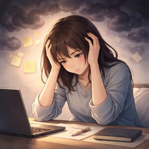 人は不安や緊張が高いとき、頭の中で同じ考えを何度も回しやすくなります。